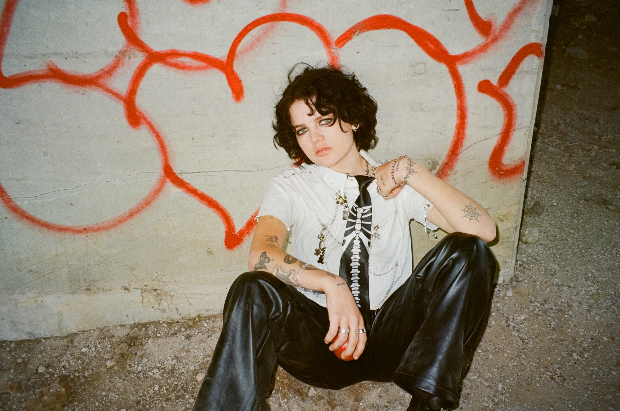 The accompanying music video is a fast-paced, high-energy visual that follows MAY-A as she falls in love and wrestles with her demons. We watch her and her new love interest in various romantic, highly saturated scenes, watching them hang out with friends and dance under a bridge. These carefree shots oscillate between MAY-A going in for a kiss and ultimately getting colorful powder blown up in her face and isolated film footage of her having an emotional breakdown in her room.