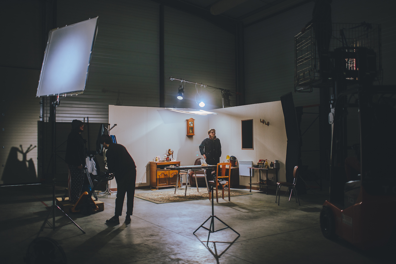 Eliot: The idea was not to recreate the story but rather to tell it in a setting that evokes nostalgia for us. We recreated the interior of an old suburban home, the kind of place where we saw our grandparents live their last days. The character tells his story while destroying old letters, old photos, and old objects to forget a bygone era. We wanted to put a little bit of comedy in it by presenting a kind of loser who sometimes tries to be someone else. It was also fun to see him smoking cigarette after cigarette in all circumstances...In the end, we have a lot in common with this character. We shot it in a big hangar and it was very cold; the conditions weren't that easy but we had a lot of fun.